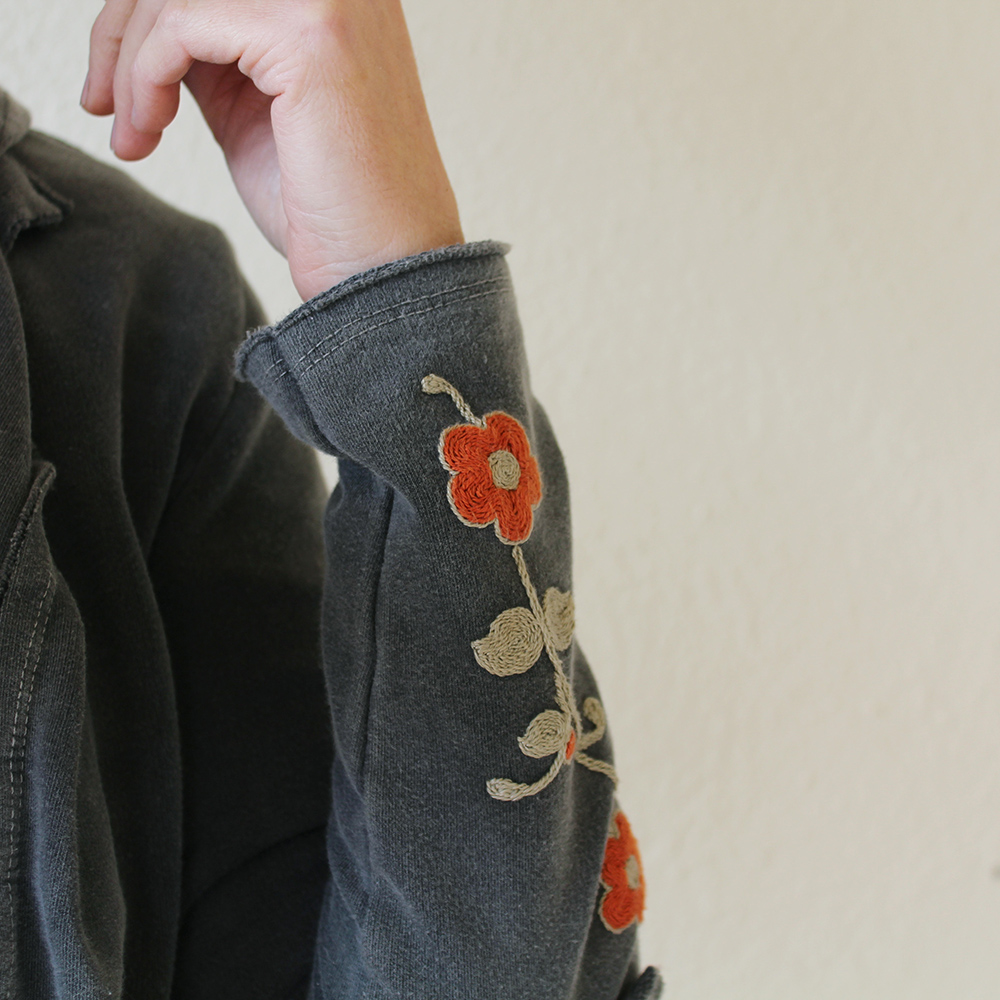 embroidered jacket 1 | Pepita Calabaza | Upcycling: bordado sobre una chaqueta de punto