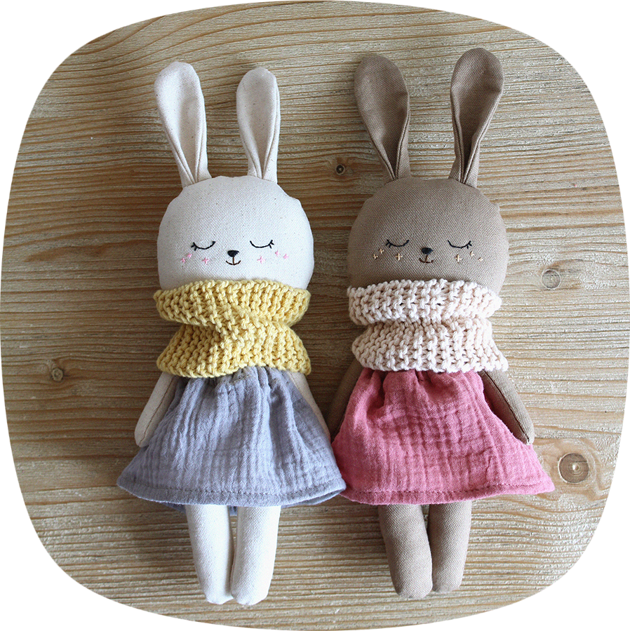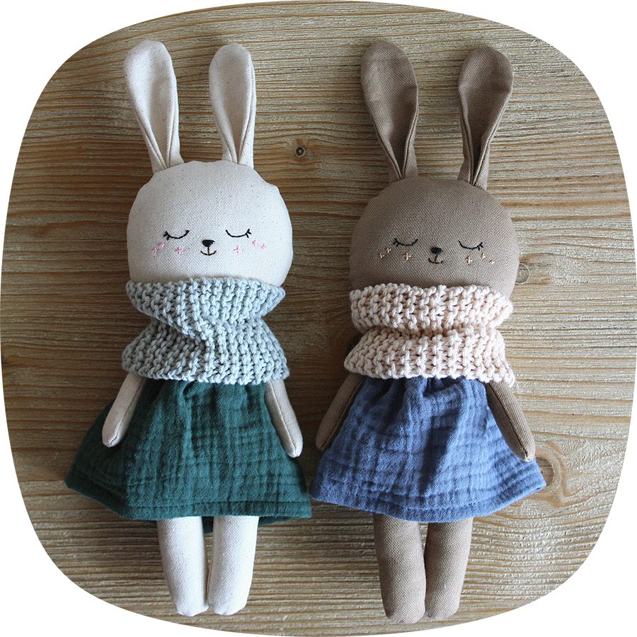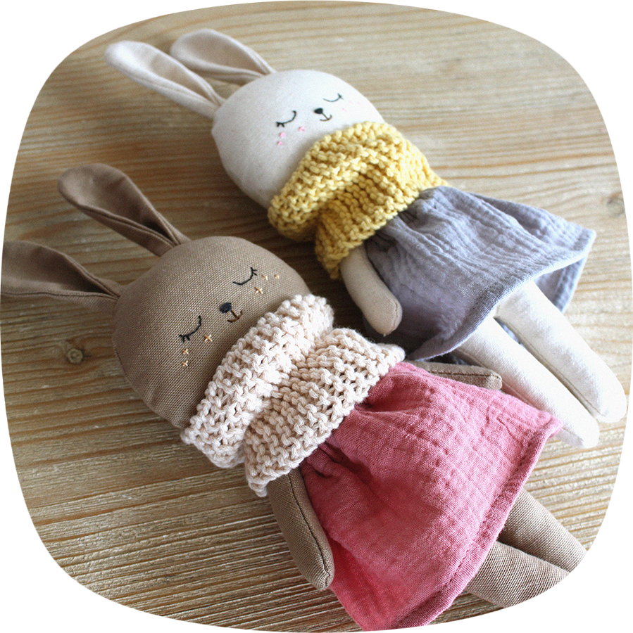 Materiales: loneta de algodón, muselina de algodón, lana de algodón orgánico, relleno hipoalergénico de poliéster.