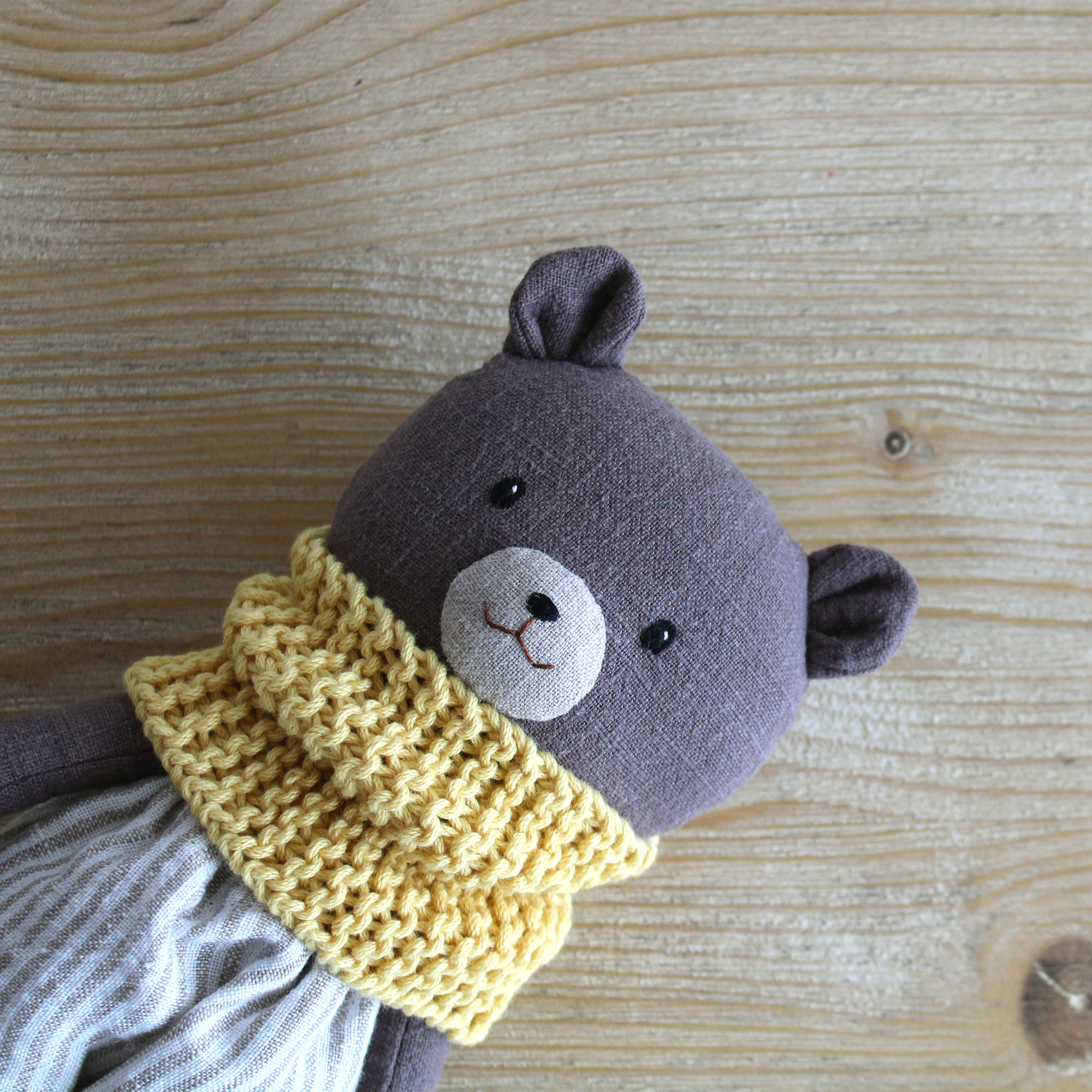 Materials: linen, organic cotton wool, hypoallergenic polyester stuffing mainly from the recycling of bottles.
