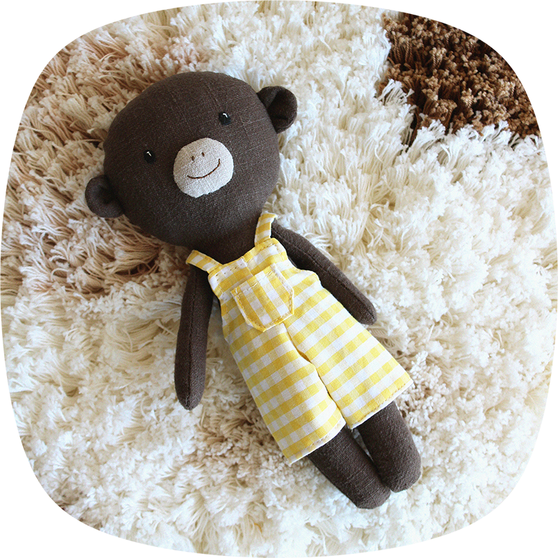 Materiales: tela de lino, tela de algodón, relleno hipoalergénico de poliéster procedente del reciclado de botellas.