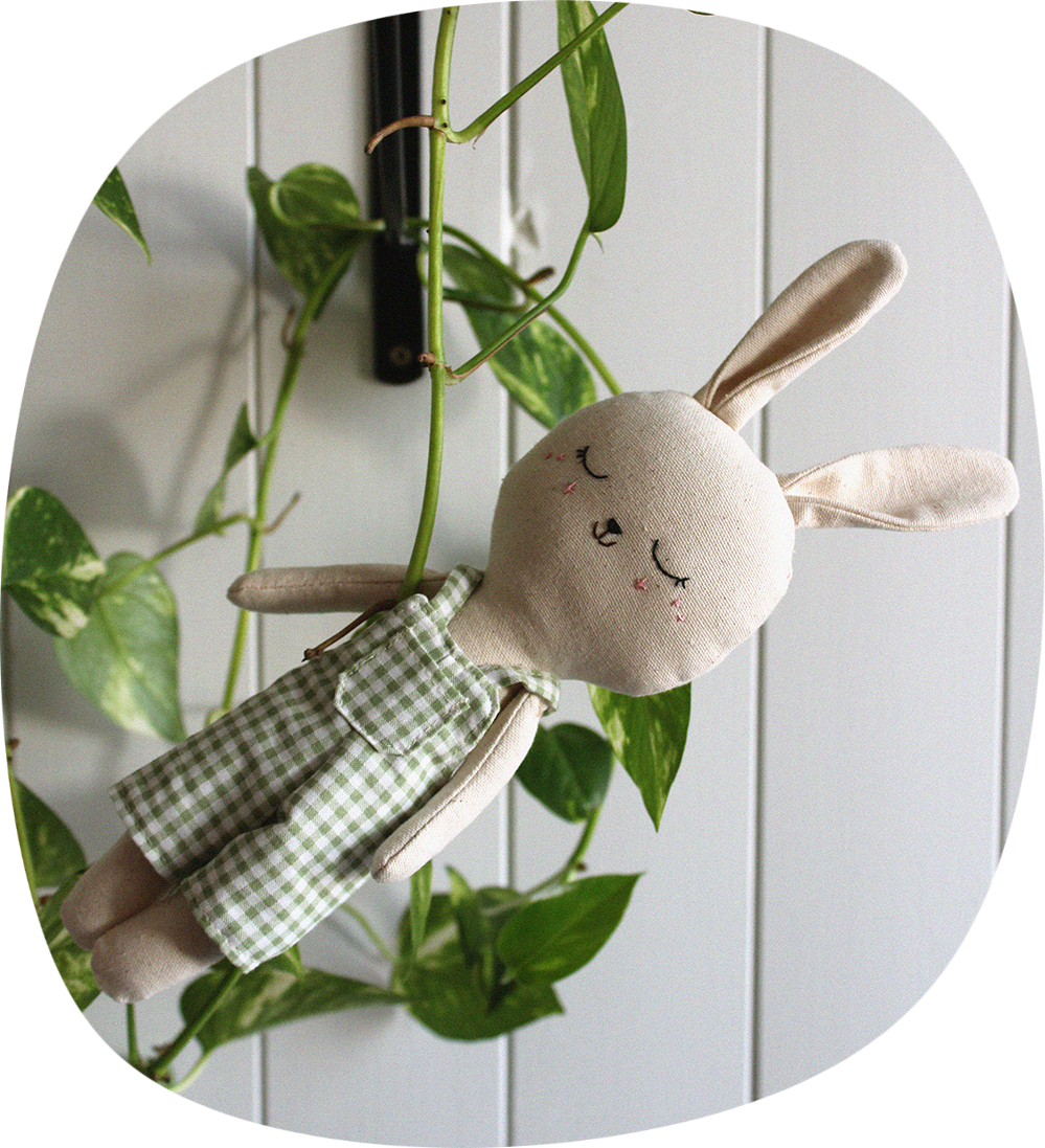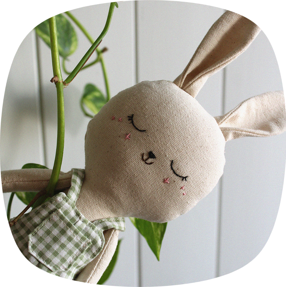 Materiales: loneta de algodón, tela de algodón, relleno hipoalergénico de poliéster procedente del reciclado de botellas.