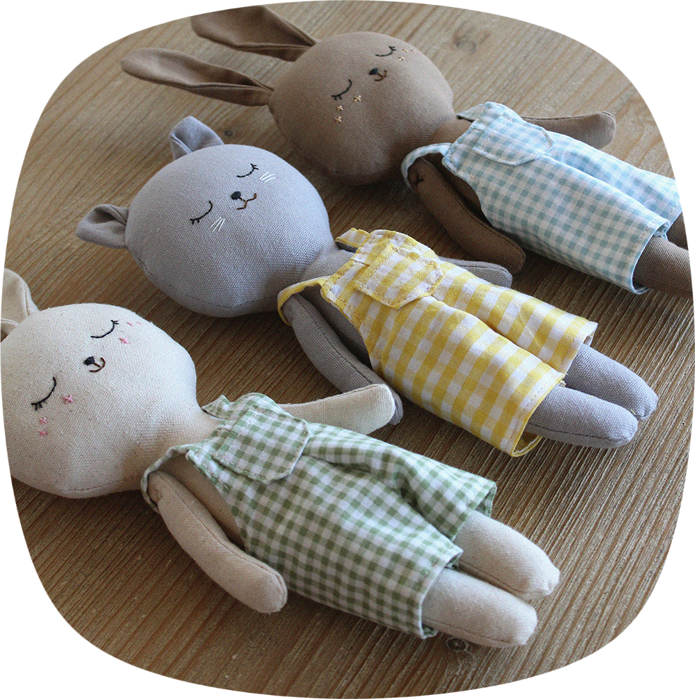 Seguridad: Los conejitos están pensados y diseñados para el juego de bebés y niños y niñas de todas las edades. No contienen botones ni elementos que puedan desprenderse y suponer un riesgo, aún así siempre es importante la vigilancia de un adulto durante el juego de los bebés. Este muñeco cumple con las disposiciones de la Directiva 2009/48/CE del parlamento Europeo y del Consejo, de 18 de junio de 2009, sobre la seguridad de los juguetes mediante las especificaciones técnicas indicadas en las normas armonizadas EN-71.